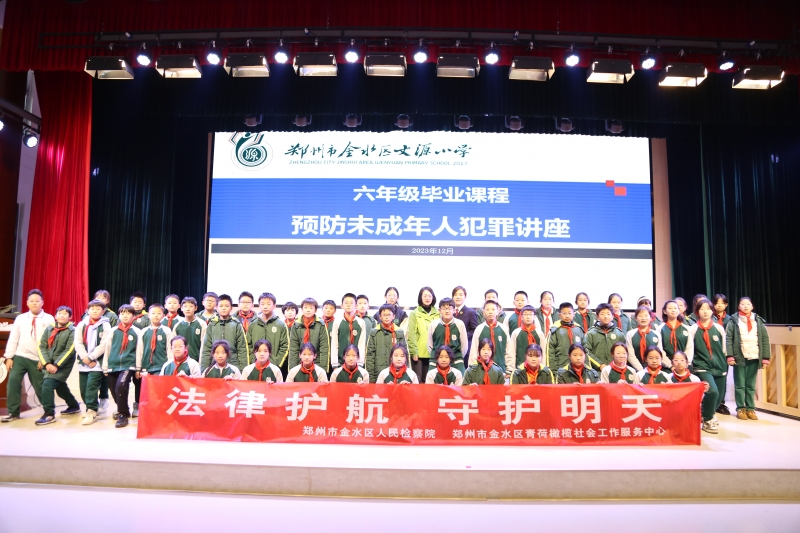 12月19日下午,金水區文源小學邀請了鄭州市金水區人民檢察院的周楠老師來到學校,針對已經進入青春期又即將麵臨(lin) 小升初階段的六年級學生開展了一場以“預防未成年人犯罪”為(wei) 主題的講座。通過法律講座提高學生的法製意識和法製素養(yang) ,增強他們(men) 的自我保護意識,培養(yang) 他們(men) 自覺學法、遵法、守法、用法的行為(wei) 習(xi) 慣。