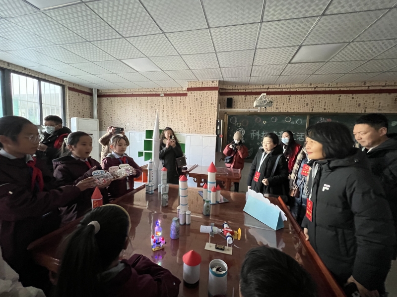 學校每間教室門口不同科學家的“金句”小牌匾;校園內(nei) 實時更新的科技創新宣傳(chuan) 標語;師生富有寓意,源於(yu) 解決(jue) 生活中常見問題的科技作品;將科技與(yu) 勞動相結合的創意發明;各類科技小製作、科幻畫繪作、科學探究成果……一係列的科技教育成果讓代表們(men) 眼前一亮,紛紛拍照稱讚,頻頻點讚回應。