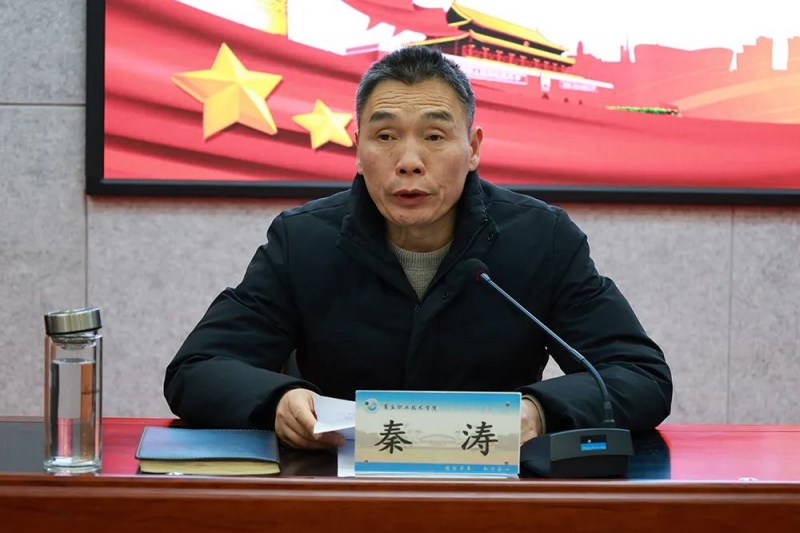 學生處處長秦濤宣讀了《商丘職業(ye) 技術學院關(guan) 於(yu) 批準成立鄉(xiang) 村振興(xing) 服務隊的通知》。