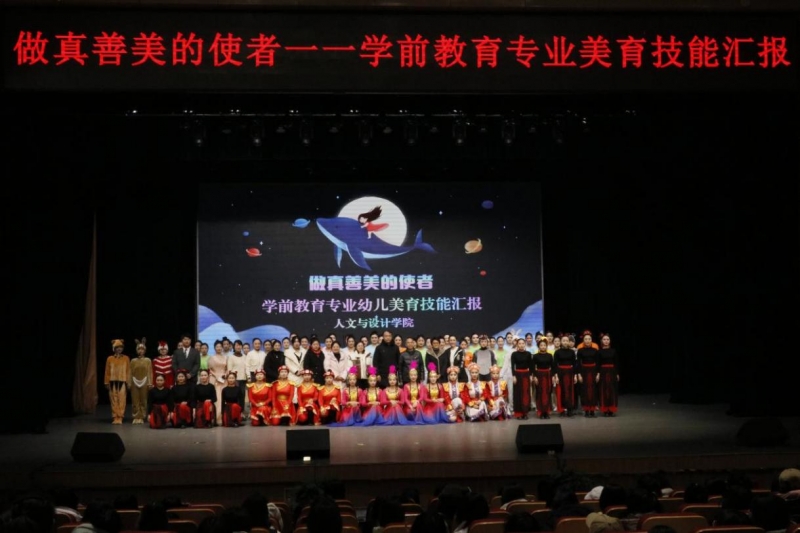 12月19日晚,河南開放大學人文與(yu) 設計學院學前教育專(zhuan) 業(ye) 幼兒(er) 美育技能匯報展演於(yu) 舉(ju) 行。學校各部門領導和人文與(yu) 設計學院的校企合作單位河南貝佳美教育集團總公司、河南紫藤教育科技有限公司、鄭東(dong) 新區伯奕幼兒(er) 園等單位負責人觀看了現場演出。