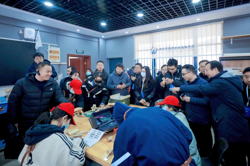 在鄭州市第47高級中學,與(yu) 會(hui) 成員參觀了數學探索館、國學教室、化學實驗室、創客空間等各類學科教室,體(ti) 驗學校多樣化發展的堅實基礎。
