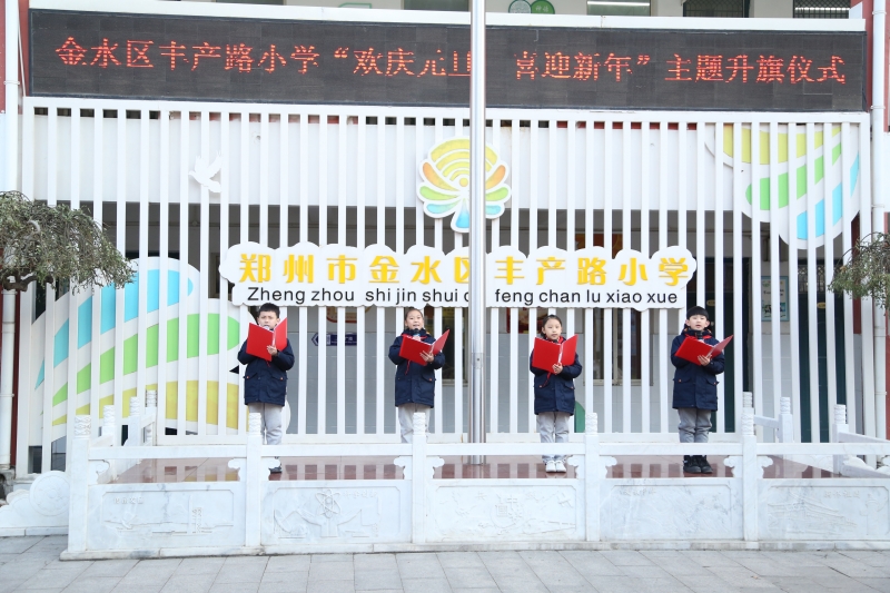 鄭州市金水區豐(feng) 產(chan) 路小學組織全校師生開展了主題為(wei) “歡慶元旦 喜迎新年”的係列活動。在升旗儀(yi) 式上,四一中隊的孫皓哲進行了題為(wei) 《喜迎元旦 做最好的自己》的國旗下演講,他向全體(ti) 師生介紹了元旦的來曆。三七班學生代表帶來詩歌朗誦《新年是什麽(me) 》。
