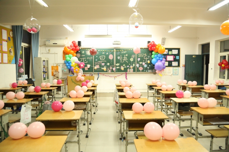 各班教室裏喜氣洋洋,熱鬧非凡。同學們(men) 精心布置,把自己的“家”裝扮一新:窗花、彩條、氣球、春聯......處處張燈結彩,紅紅火火,富有童趣和創意。走廊、窗戶上也無不洋溢著“喜慶”二字,教室內(nei) 外煥然一新,充滿著濃濃的新春氣息。