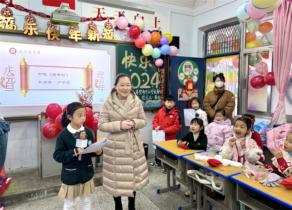 金水區農(nong) 科路小學領導班子成員給各班孩子們(men) 送來神秘大禮包與(yu) 新年祝福祈願,欣賞孩子們(men) 精彩紛呈的表演,與(yu) 孩子們(men) 一同沉浸在節日的喜慶氛圍中。此次元旦聯歡會(hui) 活動在師生們(men) 的歡聲笑語中圓滿結束。