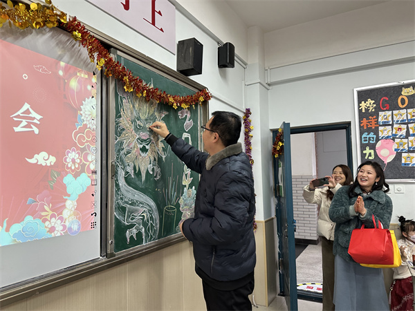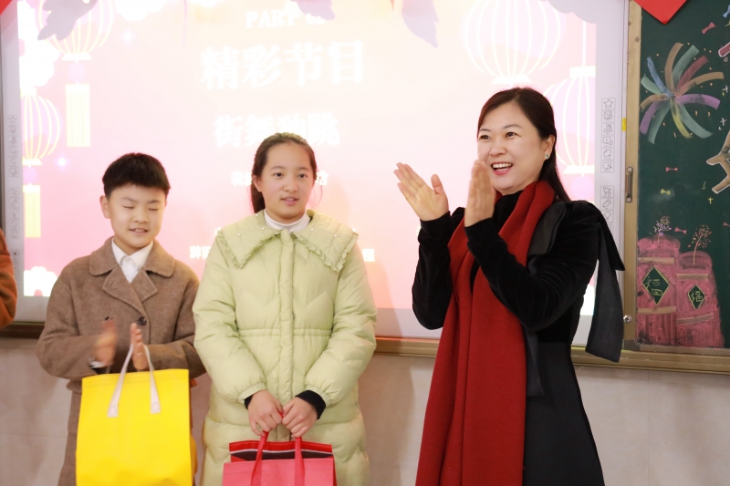 在接下來的新年茶話會(hui) 環節,同學們(men) 可謂亮出了拿手絕活,詩歌朗誦、小品相聲、快板魔術、舞蹈樂(le) 器……每個(ge) 節目都精彩絕倫(lun) ,教室裏歡聲笑語不絕於(yu) 耳,掌聲雷鳴,洋溢著濃濃的節日氣氛。在學校黨(dang) 支部書(shu) 記、校長孫冬梅的帶領下,班子成員走進各班,為(wei) 孩子們(men) 送去新年祝福:富有吉祥寓意的龍娃,深受孩子喜愛的書(shu) 籍……祝福同學們(men) 在新的一年滿載收獲,幸福成長。