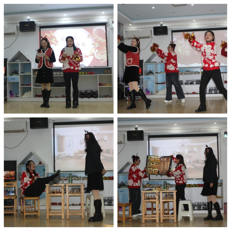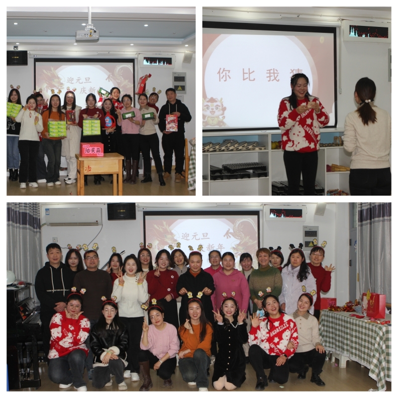 12月29日下午,鄭州市金水區利智學校工會(hui) 組織了2024年“迎元旦,慶新年”活動。節目精彩紛呈,會(hui) 場笑聲不斷。才藝展示環節,兩(liang) 位主持人宣布活動正式開始,四位新入職教師便身著喜氣洋洋的紅色服裝給大家獻上了一支活力十足的開場舞《相親(qin) 相愛》,會(hui) 場氣氛一下子熱鬧了起來。緊接著,由孔龍珠、劉祥君、程樂(le) 樂(le) 三位教師演繹的小品《虎父無犬子》,逗得各位教師忍俊不禁、捧腹大笑。隨後,侯欣怡、郭冰燕、袁小珍、虎雪晴、薛麗(li) 瑤五位老師一展歌喉,帶來了一首悠揚動聽的歌曲串燒,讓人不禁跟唱起來。接著,王芳、萬(wan) 婷婷、王佳佳、許雁卉、楊佳琳五位老師帶來的朗誦《我愛上班》,誦出了歡笑,誦出了心聲。最後,多才多藝、溫文爾雅的韋新戰老師,展示了鋼琴獨奏《雲(yun) 河》,他那悅耳的琴聲讓人如癡如醉,仿佛置身於(yu) 雲(yun) 海之中。