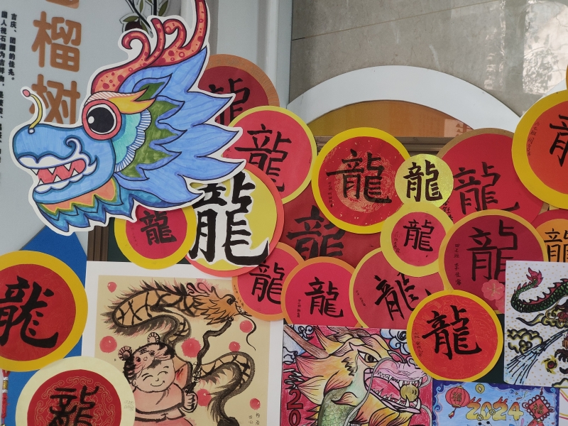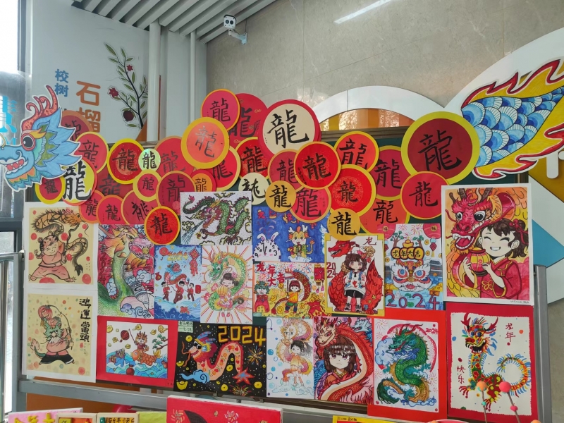 為(wei) 了傳(chuan) 承中華優(you) 秀傳(chuan) 統文化,厚植文化自信,12月21日至28日,金水區未來小學舉(ju) 行了以“祥龍瑞氣,共繪未來”為(wei) 主題的美術創作,迎接新年的到來。此次美術活動美術組根據學生年齡特征進行分層次安排。針對低年級學生年齡小的特點,通過彩泥塑型、扭扭棒,製作可愛的龍,用畫筆創作可愛的龍形象,表達對新年的願望;三年級學生開拓思維、創新發展,利用彩紙、廢舊材料等製作神龍,四年級學生通過中國畫的形式畫龍,都重新賦予龍新的形象,高年級學生畫麵中注重展現高超的繪畫技法,使用卡通人物和龍的結合進行創作、模仿剪紙的形式畫龍。學生用多種元素的結合,表達了對龍年的憧憬和對新的一年的希望。另外四五六年級還在書(shu) 法課堂上用毛筆寫(xie) “龍”字,隸篆楷行多種字體(ti) 的書(shu) 寫(xie) ,表達了對新年的祝福。