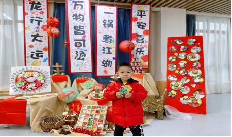 幼兒(er) 園的教師和孩子們(men) 將甲辰新歲與(yu) 新年味道、民俗工藝、非遺文化深入融合,在沉浸式“創”、互動式“觀”、體(ti) 驗式“悟”中,使傳(chuan) 統文化在藝術中多彩傳(chuan) 承,讓童趣世界在畫作中繽紛展現,將民族智慧在內(nei) 心中生根成長。