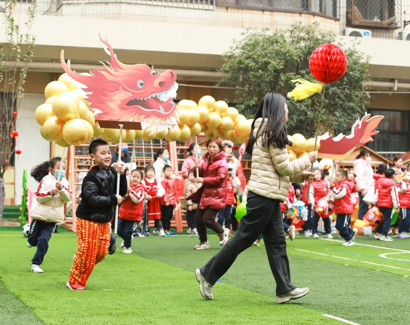 為(wei) 更好地促進幼兒(er) 園與(yu) 家長之間的交流,增長幼兒(er) 的見識,大力弘揚中華民族優(you) 秀的傳(chuan) 統文化,傳(chuan) 承民族精神,讓幼兒(er) 在中國傳(chuan) 統文化的嚐試與(yu) 體(ti) 驗的過程中,全麵發展幼兒(er) 的探究和動手能力,感受龍年的喜悅,12月29日上午,鄭州市金水區第一幼兒(er) 園教育集團舉(ju) 辦了慶元旦親(qin) 子遊園活動。