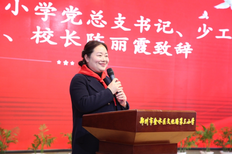 此次活動對於(yu) 金水區文化路第三小學教育集團全體(ti) 師生來說是一次生動的紅色思政大課。近年來,金水區文化路第三小學以“打造紅學校 培育紅孩子”為(wei) 德育目標,堅持以愛國主義(yi) 教育為(wei) 內(nei) 核,在日常教育教學中深入落實立德樹人根本任務。學校持續開展了“從(cong) 小學先鋒 長大做先鋒”係列活動、“學先鋒有信仰 做先鋒有力量”紅色文化周活動、領巾飄揚心向黨(dang) 獻禮隊旗同成長”入隊儀(yi) 式、“翰墨飄香頌黨(dang) 恩年”千人書(shu) 法大賽活動、“閃閃紅星大講堂”活動等,生動演繹和展示師生愛國愛黨(dang) 的教育成果,不斷傳(chuan) 承紅色基因、凝練紅色文化,讓老師們(men) 和少先隊員們(men) 了解黨(dang) 的曆史、講好黨(dang) 的故事、不斷厚植師生愛黨(dang) 、愛國的情懷,讓紅色基因、革命精神薪火相傳(chuan) 。