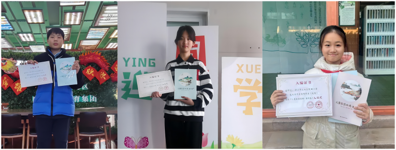 鄭州市二七區隴西小學還積極與(yu) 南京市兒(er) 童品讀經典實驗學校共同體(ti) 組織各校進行主題活動聯動,組織學生參與(yu) 唐詩經典相關(guan) 詩篇的著書(shu) 出版活動。2023年6月,《兒(er) 童品讀經典·唐詩卷》在南京正式首發,隴西學子趙元溪誦讀的音頻作品《觀獵》《哥舒歌》《錦瑟》入錄第2卷(050、102)、第3卷(098),謝廖生、周淩嵐分別創作的繪圖作品《竹裏館》、《聞王昌齡左遷龍標遙有此寄》分別入編第2卷(118)、第3卷(168)。2024年1月,三名學生正式收到人生中的第一部作品及入編證書(shu) 。