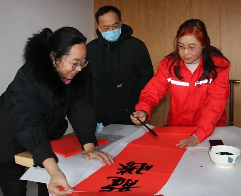 在社區的活動現場,前來接受義(yi) 診服務的中老年人絡繹不絕,濮陽醫專(zhuan) 的醫療專(zhuan) 家們(men) 為(wei) 居民免費提供血壓測量和心髒聽診,進行內(nei) 科、外科、婦科疾病、老年病、頸肩腰腿、糖尿病、兒(er) 童成長、膳食養(yang) 生等谘詢指導,為(wei) 居民們(men) 提供了全麵的健康幫助。社區工作人員、誌願者和書(shu) 法老師也早早擺好桌椅,準備好紅色的對聯紙、毛筆和墨水。書(shu) 法老師鋪紙研墨,筆酣墨飽,把一個(ge) 個(ge) 美好的祝福揮灑在紙上,把一句句衷心的祈願融入在墨中。在工作人員的引導下,社區居民有序挑選自己喜歡的對聯,或是請書(shu) 法老師幫忙書(shu) 寫(xie) 春聯,做完診療的居民們(men) 拿著一幅幅紅火的春聯,高興(xing) 不已,紛紛豎起大拇指為(wei) 濮陽醫專(zhuan) 和社區的暖心服務點讚。