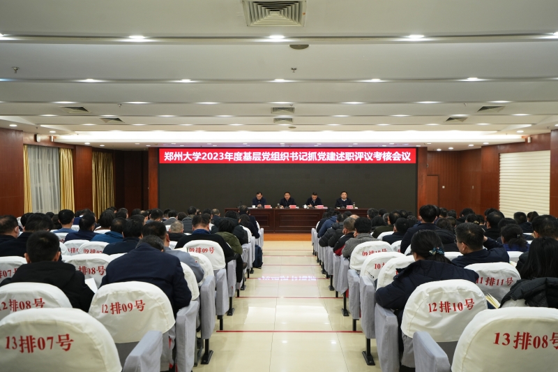 1月16日,鄭州大學在主校區召開2023年度基層黨(dang) 組織書(shu) 記抓黨(dang) 建工作述職評議考核會(hui) 議,校黨(dang) 委書(shu) 記別榮海主持會(hui) 議並講話。教育部高校黨(dang) 建工作聯絡員戚世鈞,校領導吳宏陽、韓國河、胡少偉(wei) 出席會(hui) 議,學校黨(dang) 建工作領導小組成員單位負責同誌,各基層黨(dang) 委(黨(dang) 總支)書(shu) 記、各學院負責人,部分“兩(liang) 代表一委員”,共計150餘(yu) 人參加會(hui) 議。