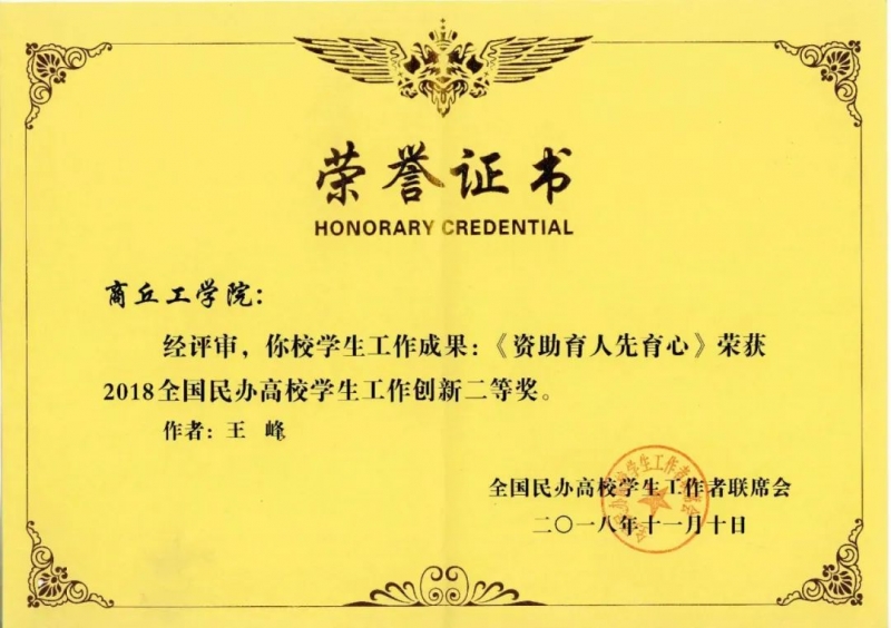 “潤心”樹典型,以典型學生激勵學生立大誌、求卓越。《“五微”網絡育人平台》被評為(wei) “河南省高等學校思想政治工作優(you) 秀品牌”,其中“商工尚學行係列訪談活動”以視頻錄製方式選取獎學金獲得者分享學習(xi) 經驗和奮鬥曆程,激勵青年學子奮發向上,目前已推出78期,在師生中反響熱烈。“尚學行”“國獎風采”展示活動是“尚學行”係列訪談活動的升級版,“國獎風采”采用實景錄製的形式展現典型人物的風采。目前已推送2期,激發更多的學生去成就夢想、完善自己美好的人生。開展“助學·築夢·鑄人”分享活動,通過國家獎助學金獲得者講述自身的受助曆程、奮鬥過程、努力方向,抒發其感恩之情,激勵更多的學生奮發向上。目前已推出130期,深受師生歡迎。開展“國獎有約”分享活動,利用微信公眾(zhong) 號宣傳(chuan) 典型學生,共推出55期,激勵更多的學生積極進取。開展“走近國獎”典型經驗分享活動,以優(you) 秀學子的先進事跡教育人、帶動人,以榜樣的力量感染人、激勵人,目前已推送3期。開展“自強之星”評選活動,每年評選出10名自立自強的學生,並授予他們(men) “自強之星”榮譽稱號,樹立可親(qin) 、可敬、可信、可學的先進榜樣,充分展現商工學子積極進取、刻苦奮鬥的精神風貌。