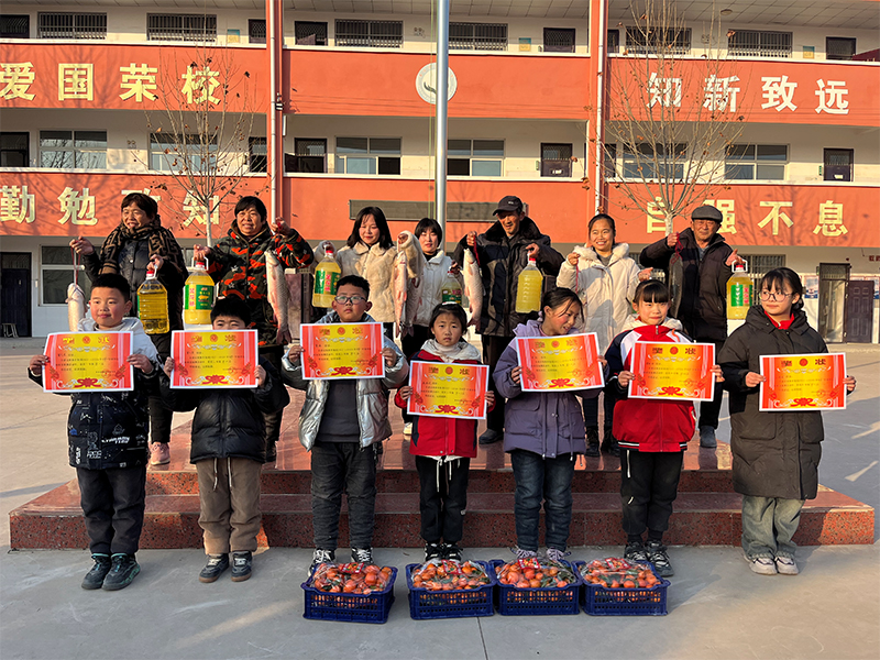 1月26日下午,一場特殊的表彰會(hui) 在在封丘縣潘店鎮巨崗小學舉(ju) 行。本次表彰會(hui) 由封丘縣巨崗教育基金會(hui) 對該校入選全鎮綜合評價(jia) 的七名獲獎者予以物質獎勵。特殊獎品有魚、桔子、食用油等,寓意“魚(與(yu) )你桔(聚)在一起加油!”。在歡快地音樂(le) 和掌聲中,獲獎學生和家長共同登上領獎台,見證了這個(ge) 榮耀時刻。