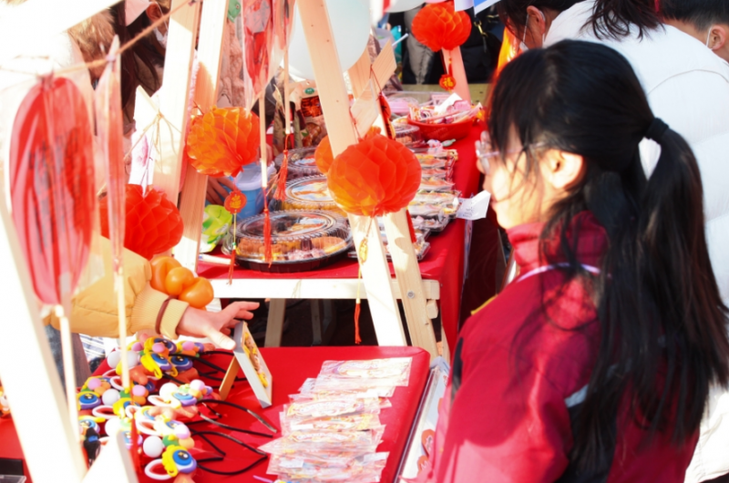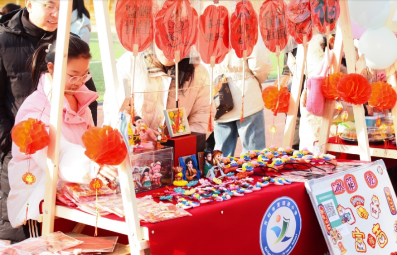 年貨大集秩序井然,熱鬧非凡。獨具特色的宋室風箏、朱仙鎮木版年畫、宋都麵塑等非遺展位均是中華優(you) 秀傳(chuan) 統文化鮮活、具體(ti) 的體(ti) 現。小顧客們(men) 紛紛駐足體(ti) 驗,流連忘返。附小的隊員們(men) 敲著鑼吆喝著叫賣自己搖的元宵,禹王台區小學的隊員們(men) 蒸製的棗花饃、黏豆包更是彩頭滿滿。別具開封特色的李記“禦坊齋”展位出售的開封特色小吃“蜜三刀”、冰糖葫蘆、棉花糖,以及香噴噴的焦糖瓜子、碧根果、大白兔奶糖勾起了大家的購買(mai) 欲。還有手工編織、氣球花、人臉彩繪、衍紙畫、投壺套圈的各項互動體(ti) 驗。