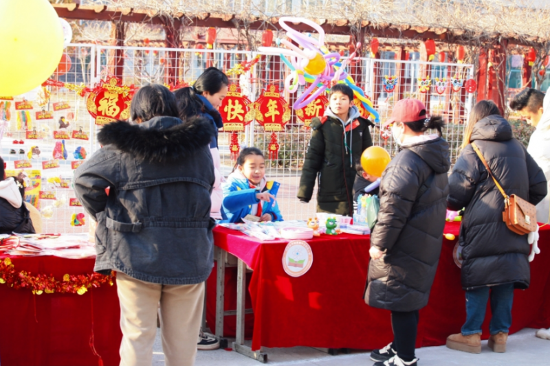 欣賞節目之餘(yu) ,各參展學校的展位已開始忙活起來,貨品琳琅滿目。一個(ge) 個(ge) 紅領巾“售貨員”笑臉相迎招攬生意,身影忙碌,叫賣吆喝聲此起彼伏。一群群紅領巾“小顧客”們(men) 興(xing) 奮地拉拽著家長,穿梭遊走在各個(ge) 展位之間,神情專(zhuan) 注地挑選著自己中意的商品。各校的春聯展位紅紅火火,人頭攢動。老師和隊員們(men) 現場揮毫潑墨,酣暢流利。他們(men) 書(shu) 寫(xie) 的甲骨文春聯也是一大賣點,盡顯文化底蘊。