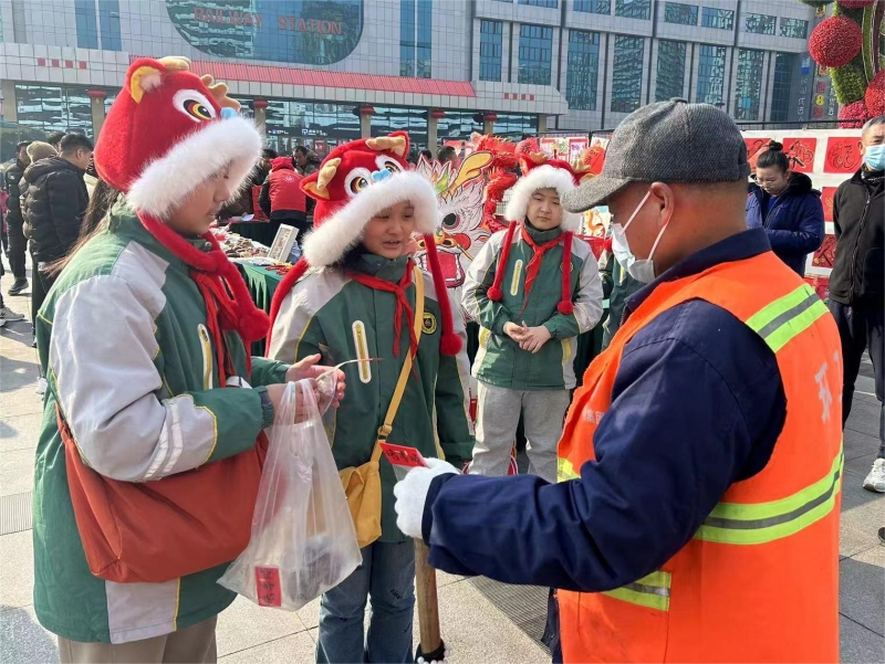 1月29日,新春將至,正值春運時期,鄭州市二七區隴西小學以全國八大交通樞紐之一——鄭州火車站東(dong) 廣場作為(wei) 社會(hui) 實踐場所,以“迎新年、送祝福”開啟了學生的實踐之旅,讓學生將知識轉化為(wei) 行動,用實踐來提升能力。