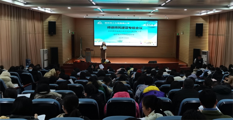 為(wei) 加強師德師風建設,提高教育工作者自身素質,1月30日,鄭州市二七區隴西小學組織開展在職教師違規辦班有償(chang) 補課治理工作和規範教師網絡發布行為(wei) 專(zhuan) 題會(hui) 議。