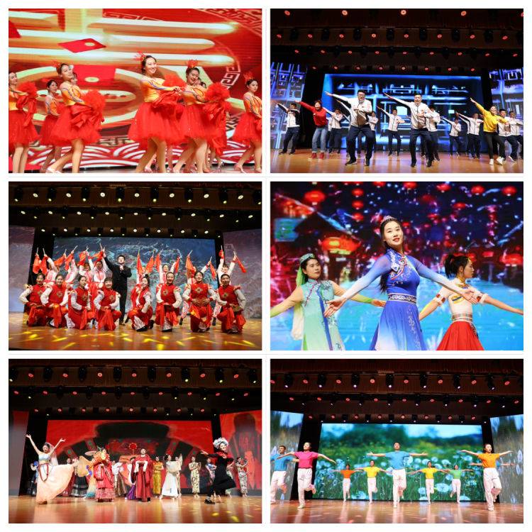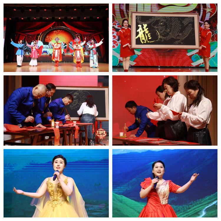 聯歡會(hui) 在熱鬧的開場舞《吉祥飛舞》中開啟“啟春·揚帆”“迎春·納福”“暢春·耕耘”三個(ge) 篇章,歌曲舞蹈《大中原》《科目三》《相親(qin) 相愛》《節日歡歌》、國風走秀《華夏風韻》、戲曲聯唱《賣水》《對花》《劉大哥講話理太偏》、情景朗誦《最美的姿態》、歌曲聯唱《滾滾長江東(dong) 逝水》《枉凝眉》《天竺少女》《好漢歌》《相親(qin) 相愛一家人》、才藝串燒《筆歌潑墨迎新春》等節目輪番上演,一個(ge) 個(ge) 精彩的節目讓觀眾(zhong) 掌聲不斷,一段段傾(qing) 心的表演讓活力競相釋放,現場喝彩聲、笑聲不斷。而穿插其中的《你比劃我猜》《搶凳子》遊戲和幸運大抽獎環節,不僅(jin) 讓聯歡會(hui) 驚喜連連,也將歡樂(le) 的氣氛推向一個(ge) 又一個(ge) 高潮。演出結束後,與(yu) 會(hui) 領導與(yu) 演職人員合影留念。