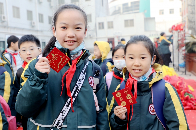 盲盒傳(chuan) 遞吉祥,孩子們(men) 滿懷期待抽取的盲盒中是學校對孩子們(men) 最真摯的龍年祝福語,期望每一位學生在新學期:做一條愛學習(xi) ,博學多才的“博學龍”;心態好,陽光快樂(le) 的“快樂(le) 龍”;重安全,遵守規則的“安全龍”;有愛心,心有他人的“仁愛龍”;愛運動,身壯體(ti) 健的“棒棒龍”,做一個(ge) 博文約禮、陽光向上的“全能龍”。