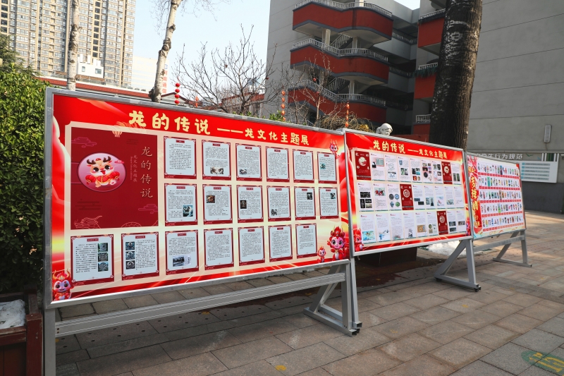在學生通道旁有關(guan) 龍知識的展板依次排開,孩子們(men) 所到之處處處洋溢著新學期的喜慶氣氛,展板上的龍言龍語,也寓意著孩子們(men) 在新學期中能夠勇攀高峰,迎接挑戰,就像鯉魚躍龍門一樣,乘風破浪,自我超越,實現自我價(jia) 值。