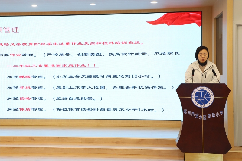 學校教導主任弓莉紅帶領全體(ti) 教師重溫“雙減”、五項管理的重要內(nei) 容,強調新學期要繼續深入學習(xi) 貫徹“雙減”和五項管理精神,深化教育改革,提升課堂教學質量,優(you) 化教學方式,全麵壓減作業(ye) 總量,構建良好的教育生態。