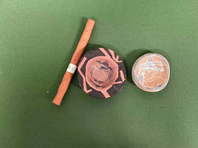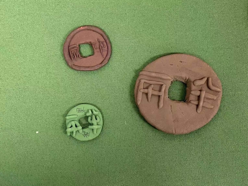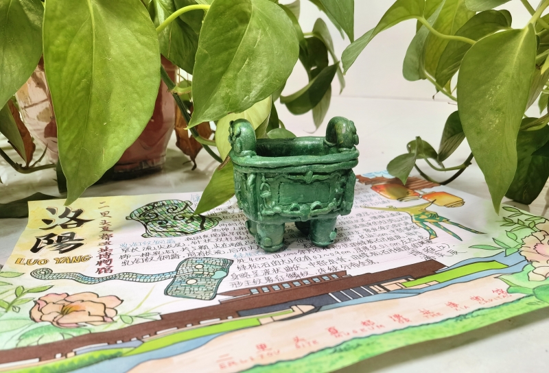 每個(ge) 地方的博物館正是“活”著的曆史,每一件藏品都曾見證過一段歲月,與(yu) 它們(men) 相見,便是與(yu) 曆史的一次對話。學生運用泥土、木材、紙張等材料,精心製作了司母戊鼎、“漢並天下”瓦當、幹欄式建築、陶院落、銅鼎、人麵魚紋彩陶盆等珍貴曆史文物,不僅(jin) 形似,而且神似,呈現的作品令人眼前一亮,充分展現了他們(men) 對曆史文化的熱愛和探究精神。