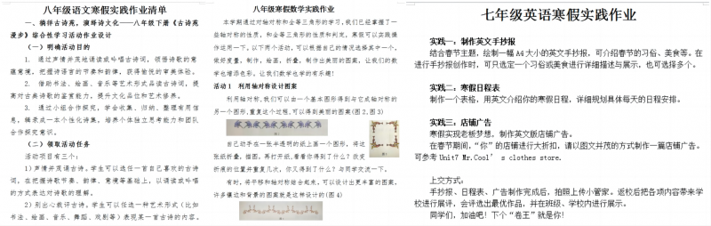 “知之者不如好之者,好之者不如樂(le) 之者。”為(wei) 構建實踐型的學科育人方式,提升學生實踐能力與(yu) 學科素養(yang) ,濟源市軹城鎮實驗中學以學科實踐為(wei) 抓手,開展了豐(feng) 富多彩的寒假學科實踐活動。