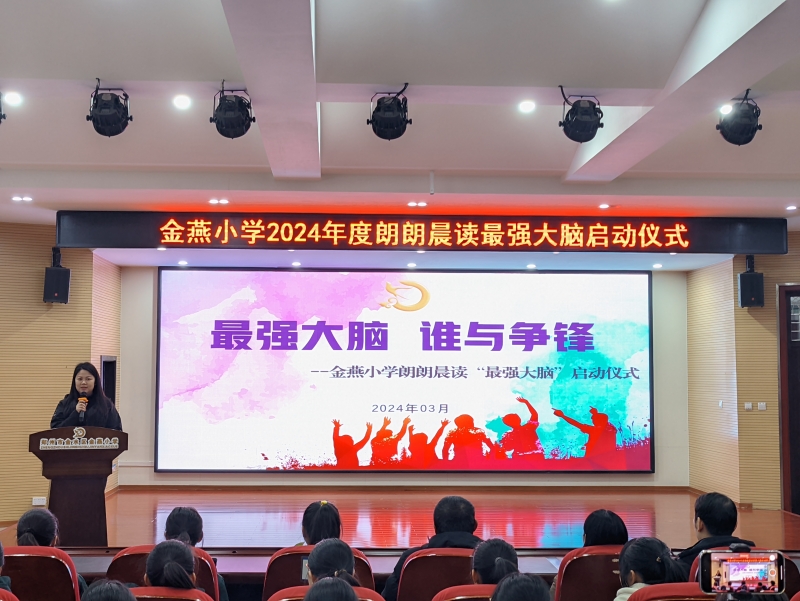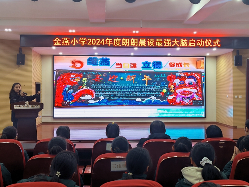 3月1日上午, 鄭州市金水區金燕小學2024年“朗朗晨讀 最強大腦”畢業(ye) 課程啟動儀(yi) 式在學校六樓報告廳舉(ju) 行。金燕小學黨(dang) 總支書(shu) 記宋璟、校長李小輝、副書(shu) 記閆釗等學校領導班子成員,以及六年級全體(ti) 師生參與(yu) 了啟動儀(yi) 式。啟動儀(yi) 式由學校教導主任王曉東(dong) 主持。活動分為(wei) 兩(liang) 個(ge) 議程:第一個(ge) 議程由德育處劉夢悅主任組織啟動儀(yi) 式;第二個(ge) 議程由王寧副校長對學生提出寄語與(yu) 期望。