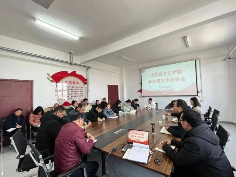 龍行龘龘啟新程,砥礪前行譜新篇。三門峽社會(hui) 管理職業(ye) 學院馬院新學期工作會(hui) 議的召開,使老師們(men) 明確了方向、提振了士氣,老師們(men) 紛紛表示,將以飽滿的熱情開啟新學期的教學工作,不斷地在實踐中磨練和超越自己,高揚旗幟,砥礪奮進,以實實在在的工作成效助力學院高質量發展。