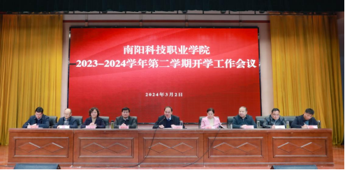 3月2日上午,南陽科技職業(ye) 學院在學術報告廳召開2023-2024學年第二學期開學工作會(hui) 議。校領導盧明存、郭淼、黑曉森、張定群、丁光雪、崔繼棟、袁基幹、鄧年令、劉彥及全體(ti) 教職工參加會(hui) 議。會(hui) 議由黨(dang) 委書(shu) 記盧明存主持。