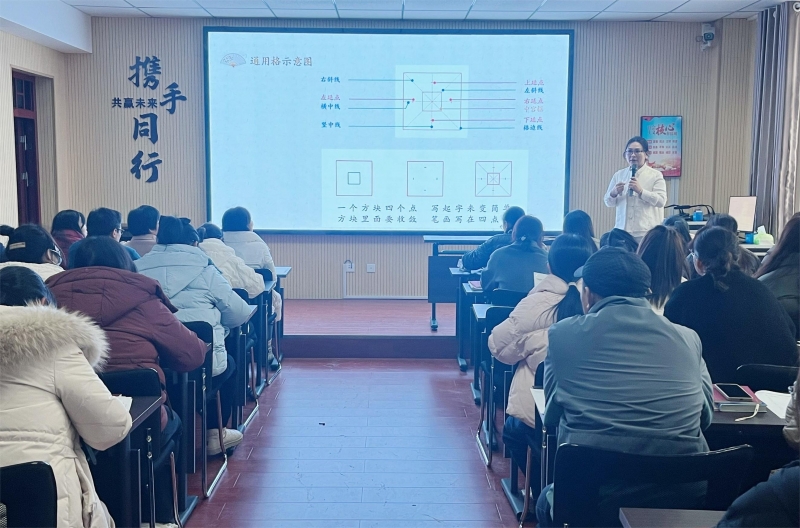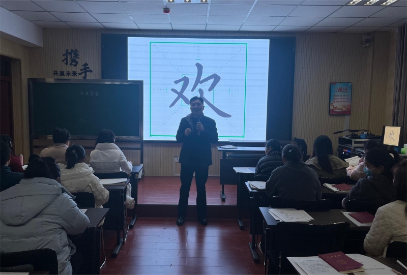 為(wei) 充分發揮教師在學生規範書(shu) 寫(xie) 中的引領作用,進一步提升全體(ti) 教師對書(shu) 法的認識,全麵推進學校特色書(shu) 法校本課程,3月4日,濟源市濟水宣化學校開展書(shu) 法校本課程專(zhuan) 題培訓會(hui) 。李小娟副校長主持本次培訓會(hui) ,許麗(li) 娟、楊菲、都小豔老師進行主講。