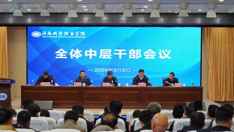 3月5日下午,河南測繪職業(ye) 學院召開全體(ti) 中層幹部會(hui) 議,部署學校2024年工作任務。校領導郭增長、張淩傑、李駿元、李明、郭書(shu) 克出席會(hui) 議,全體(ti) 中層幹部參加會(hui) 議。會(hui) 議由校黨(dang) 委書(shu) 記郭增長主持。