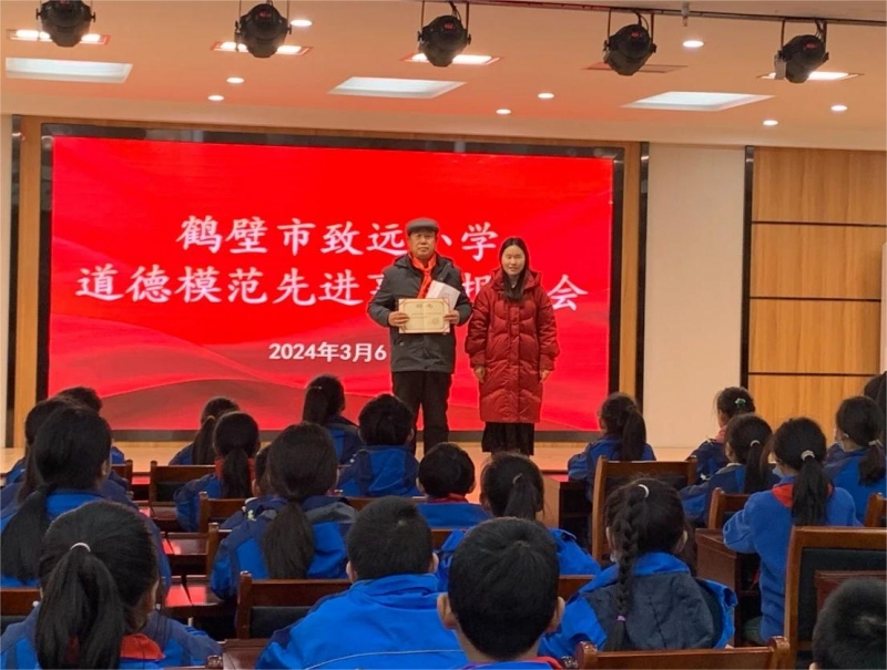 德育處徐主任為(wei) 姚玉中頒發了鶴壁市致遠小學道德模範宣講師聘書(shu) 。