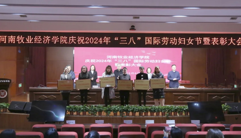 最美人間三月天,春花爛漫展新顏。在第114個(ge) “三八”國際勞動婦女節即將來臨(lin) 之際,3月6日下午,河南牧業(ye) 經濟學院在龍子湖校區圖書(shu) 館一樓報告廳召開慶祝2024年“三八”國際勞動婦女節暨表彰大會(hui) 。校黨(dang) 委書(shu) 記穆瑞傑,校長尹新明,校黨(dang) 委副書(shu) 記楊誌清、姚毅,副校長席磊出席會(hui) 議。受表彰的巾幗建功先進集體(ti) 與(yu) 先進個(ge) 人,各基層黨(dang) 委(黨(dang) 總支)書(shu) 記,分工會(hui) 主席,副處級以上女幹部和全體(ti) 女工幹部參加會(hui) 議。大會(hui) 由尹新明主持。