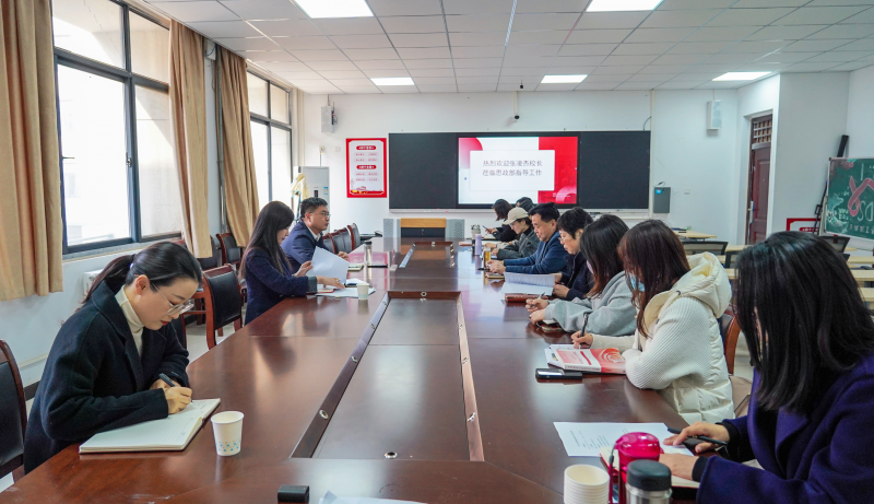為(wei) 進一步推進學校思政課建設,深入了解思政部工作開展情況,3月12日上午,河南測繪職業(ye) 學院校長張淩傑、副校長李春陽和宣傳(chuan) 統戰部副部長馬曉雲(yun) 深入思政部調研並召開現場辦公會(hui) 。思政部全體(ti) 教師參會(hui) ,會(hui) 議由思政部黨(dang) 支部書(shu) 記高國印主持。