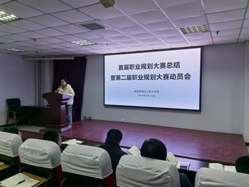 為(wei) 切實增強學生的就業(ye) 意識,培養(yang) 學生科學規劃職業(ye) 的能力,幫助他們(men) 掌握職業(ye) 規劃的知識和方法,加強職業(ye) 規劃教育和就業(ye) 指導,推動實現更高質量就業(ye) ,3月13日下午,鶴壁能源化工職業(ye) 學院在綜合樓304會(hui) 議室召開首屆職業(ye) 規劃大賽總結暨第二屆職業(ye) 規劃大賽動員會(hui) 。學院副院長何敏、招生就業(ye) 處負責人、各係部負責人、指導教師、校賽獲獎選手、學生幹部及準備參加第二屆職業(ye) 規劃大賽的同學參加了會(hui) 議。會(hui) 議由招生就業(ye) 處處長王運濤主持。