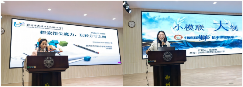 惠濟區東(dong) 風路小學和惠濟區實驗小學展示了學校優(you) 秀校本課程。東(dong) 風路小學教師李鴻黎展示了數學學科校本課程——玩轉魔方,及其對學科發展的重要意義(yi) ;實驗小學教師張麗(li) 娜介紹了英語學科校本課程——模擬聯合國,從(cong) 規劃到實施再到評價(jia) ,分享了校本課程對學生素養(yang) 發展的意義(yi) 。