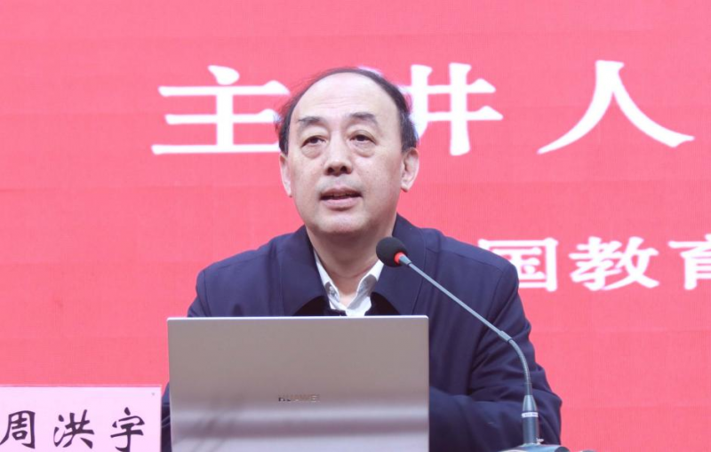 在河南教育家書(shu) 院第三批合作研究員入院活動中,中國教育學會(hui) 副會(hui) 長周洪宇做了題為(wei) 《弘揚教育家精神,做行知式大先生》的報告,從(cong) 教育家精神的基本內(nei) 涵、時代價(jia) 值、培育路徑展開生動闡述,並闡釋了陶行知生活實踐教育的核心主張。
