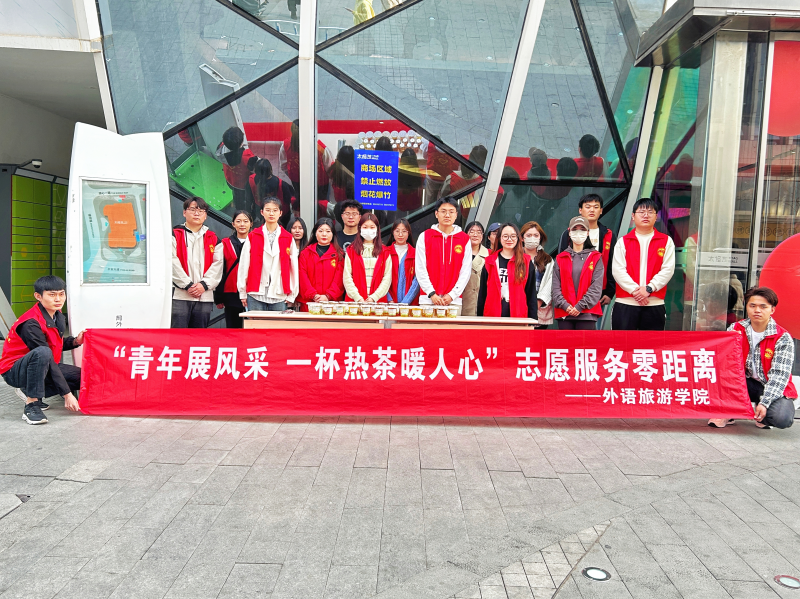 為(wei) 給這個(ge) 春天多注入一些溫情,讓愛意和暖陽遍布學校周邊,進一步弘揚“奉獻、友愛、互助、進步”的誌願精神,提升新時代大學生的社會(hui) 責任感,河南經貿職業(ye) 學院外語旅遊學院於(yu) 3月16-17日,開展主題為(wei) “青年展風采 一杯熱茶暖人心”的誌願服務零距離活動,擦亮學院青年誌願服務品牌。