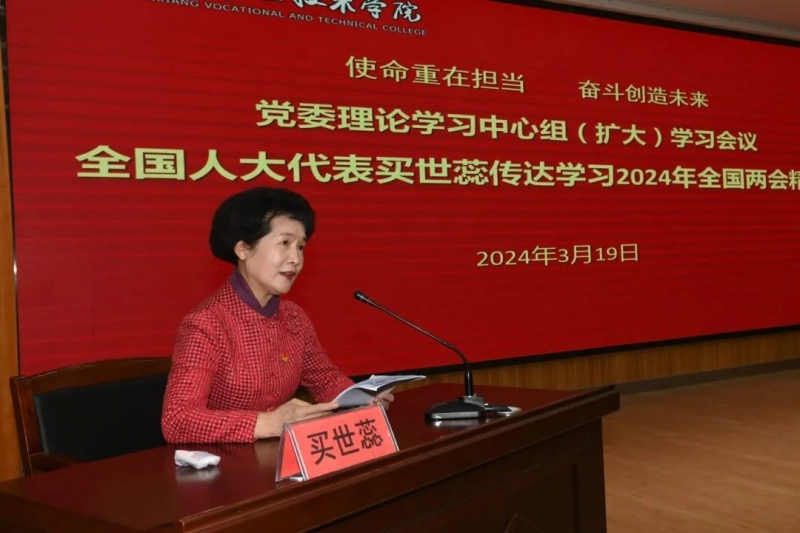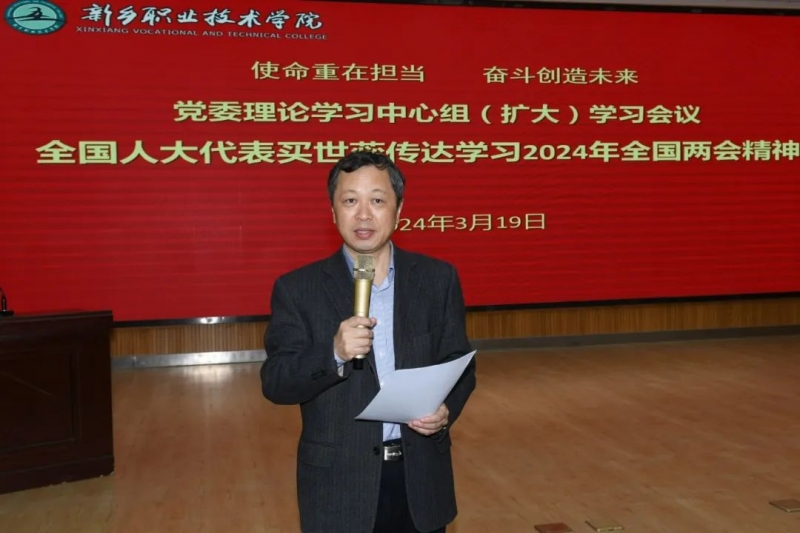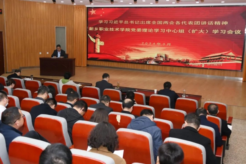 為(wei) 深入學習(xi) 貫徹全國兩(liang) 會(hui) 精神,切實把全校廣大幹部群眾(zhong) 的思想和行動統一到會(hui) 議精神上來,3月19日下午,新鄉(xiang) 職業(ye) 技術學院召開黨(dang) 委理論學習(xi) 中心組(擴大)學習(xi) 會(hui) 議,大會(hui) 上,全國人大代表買(mai) 世蕊以“使命重在擔當、奮鬥創造未來”為(wei) 主題,圍繞學習(xi) 貫徹兩(liang) 會(hui) 精神,講述自己參加全國兩(liang) 會(hui) 的心得感悟,黨(dang) 委中心組成員及全體(ti) 中層以上幹部200餘(yu) 人聆聽了報告,此次會(hui) 議由黨(dang) 委書(shu) 記張林主持。