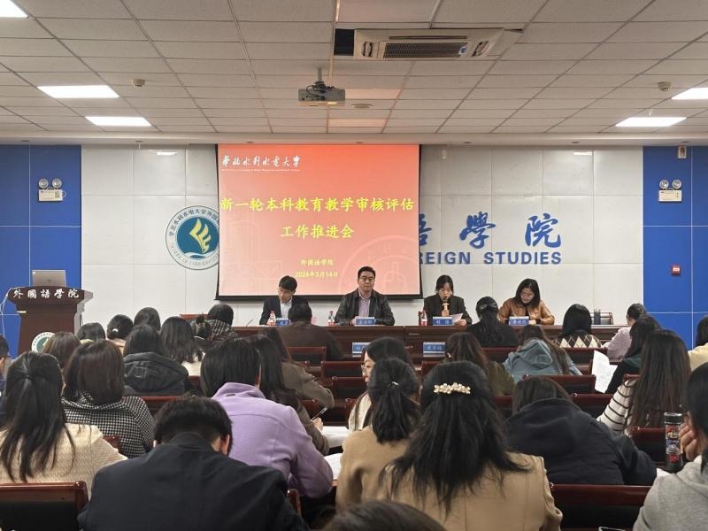 3月15日下午,華北水利水電大學外國語學院召開迎接新一輪本科教育教學審核評估工作推進會(hui) 。此次會(hui) 議旨在深入貫徹學校迎評工作推進會(hui) 的會(hui) 議精神,全麵深入推進學院各項迎評工作,以確保高質量完成本科教育教學審核評估的各項任務。