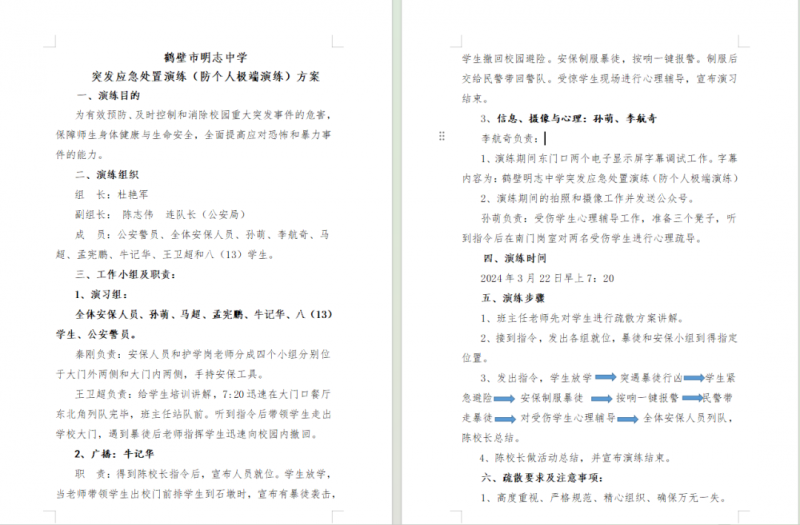 演習(xi) 前,學校成立反恐防暴演習(xi) 指揮部,製訂了詳細的演練方案,強調了模擬事件的處置流程,明確了應急小組的職責和任務,為(wei) 演練活動做了充分準備,確保演練活動順利開展。