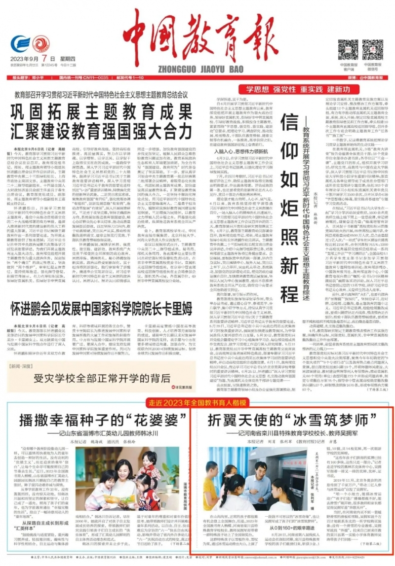 其中,首屆河南省教書(shu) 育人楷模、洛陽市欒川縣特殊教育學校教師吳擁軍(jun) 還入選全國教書(shu) 育人楷模,先後被教育部“微言教育”、《中國教育報》《教育時報》等媒體(ti) 多次報道。
