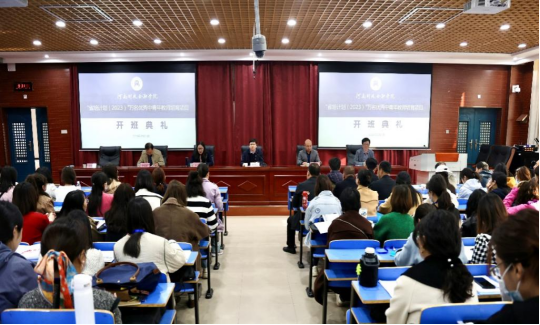 3月21日,由河南財政金融學院承擔的“省培計劃(2023)”萬(wan) 名優(you) 秀中青年教師培育項目小學語文培訓班開班。校長李學誌教授出席開班儀(yi) 式並致辭。該校繼續教育學院、文化與(yu) 傳(chuan) 播學院負責同誌,授課教師代表、項目班主任及來自全省各地128名優(you) 秀中青年教師參加了開班儀(yi) 式。