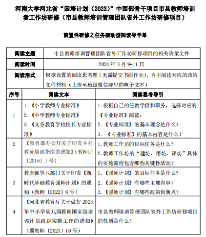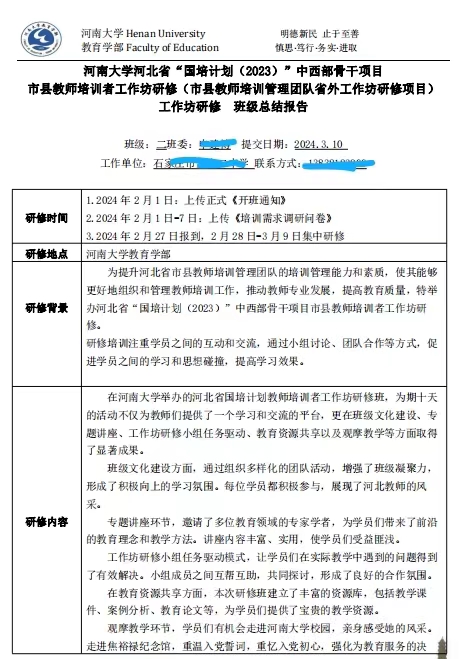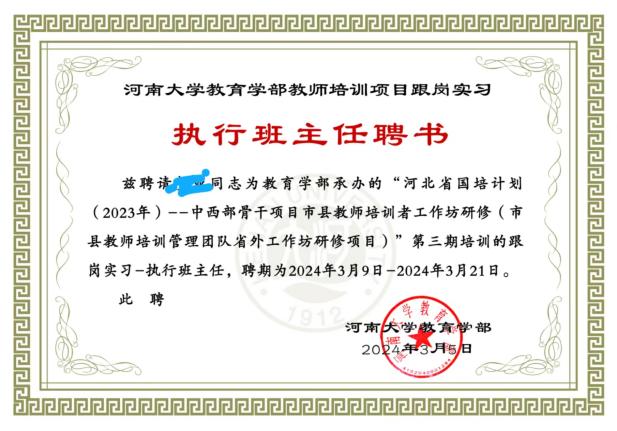 河南大學教育學部於(yu) 2024年2月27日至3月21日,順利完成了河北省“國培計劃(2023)”——中西部骨幹項目市縣教師培訓者工作坊研修(市縣教師培訓管理團隊省外工作坊研修項目)三期的300名參訓教師的集中培訓任務。
