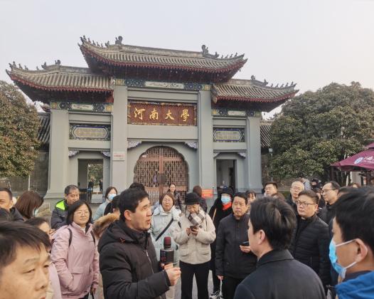 (一)河南大學明倫(lun) 校區進行校園文化觀摩研學。在劉先鋒老師專(zhuan) 業(ye) 的講解中,學員們(men) 通過了解河南大學近代建築群的故事和背景,不僅(jin) 進一步感受到河南大學曆史、文化、建築藝術以及多學科交叉與(yu) 融合的特色,而且加深了對曆史建築保護和利用的認識,並思考如何在未來的學習(xi) 和工作中發揮創新精神。