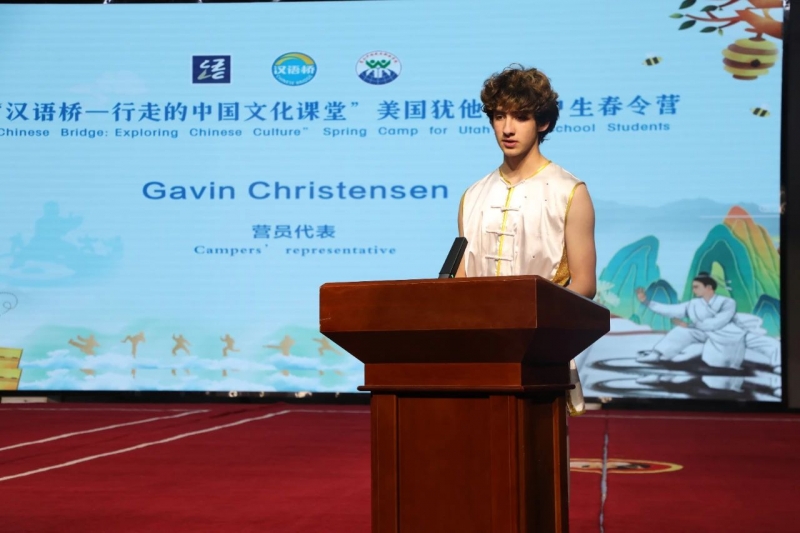 營員代表Gavin Christensen對學院誌願者師生表示衷心感謝。他說:“春令營期間,學院安排了多樣的文化課程和探訪活動,讓我擁有了一場豐(feng) 富多彩的旅程。實現了許多願望:嚐到了中國美食、看到了中國美景、學習(xi) 了中國武術、交到了中國朋友、發生了很多有趣而難忘的事情。短短一周,不僅(jin) 加深了對中國文化的理解,也在語言方麵都有了很大提升。此次春令營我們(men) 過得非常充實,收獲滿滿”。