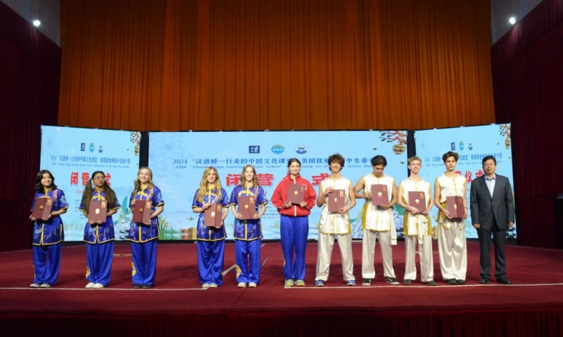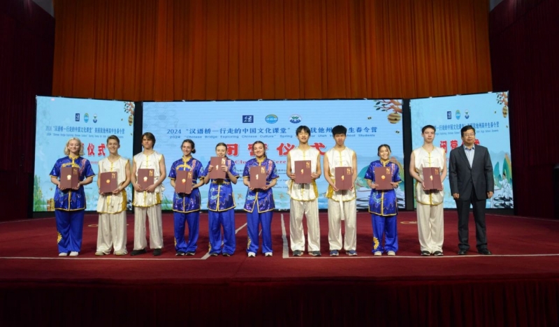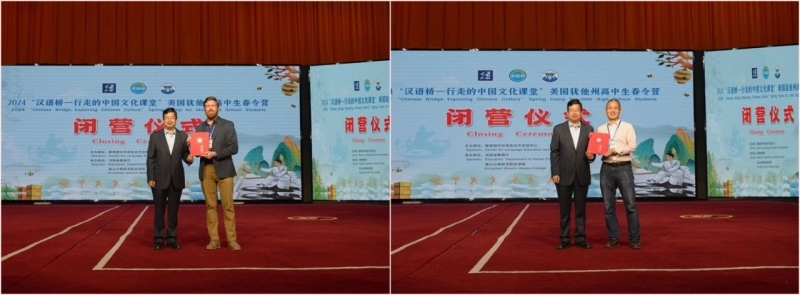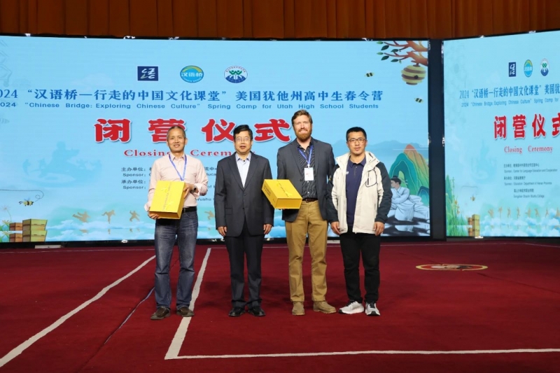3月26日,由教育部中外語言交流合作中心主辦,嵩山少林武術職業(ye) 學院承辦的2024“漢語橋—行走的中國文化課堂”美國猶他州高中生春令營完美收官。黨(dang) 委書(shu) 記田逸、美國海倫(lun) 斯諾基金會(hui) 主任 Eric Stohl Chipman、美國猶他州教育廳項目官員赫德、學院國際部主任趙君明出席儀(yi) 式。營員們(men) 、學院誌願者參加儀(yi) 式。